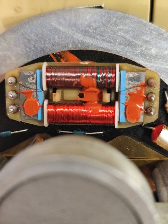 On faisait bien les choses chez Jaeger à l'époque: on voit le rubis rouge qui supporte l'extrémité de l'axe du galvanomètre.