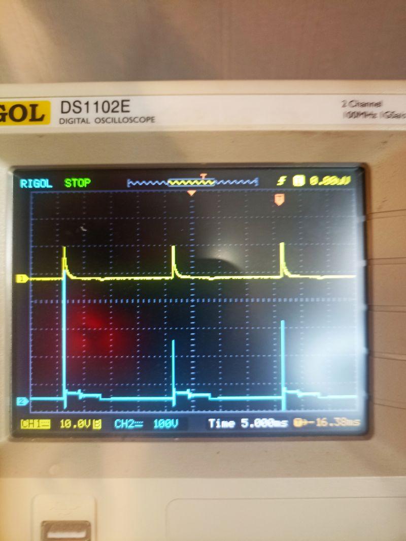 Les pointes de plus de 200V arrivant en 6 sont filtrées par la bobine et en 5 on trouve une onde carrée.