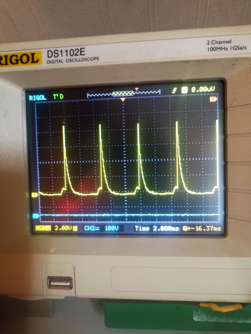 L'impulsion sur la base est de 10V, durée fixe environ 2ms.