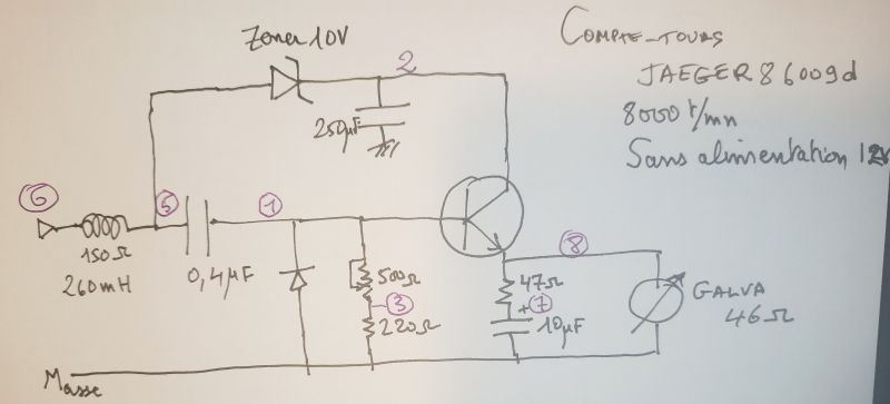 200Hz 6000 t/mn 0.63V au lieu de 0.68V soit une erreur de 8% donc 480 t/mn. En 2 : 9.8V