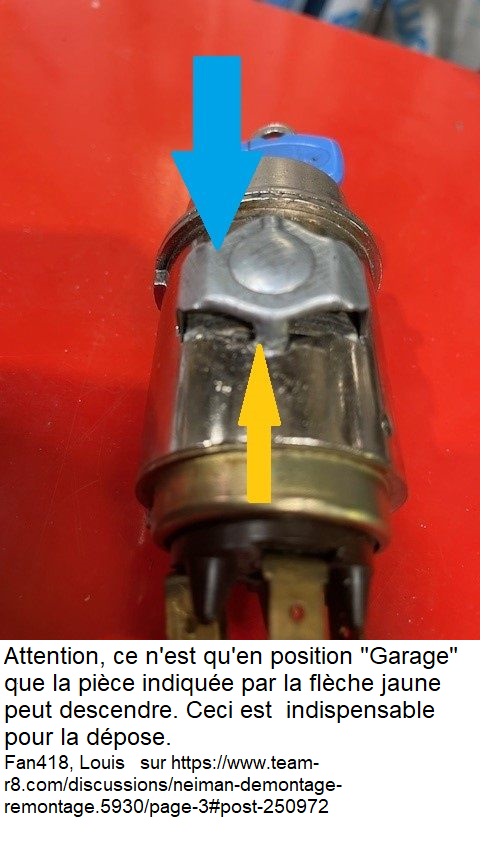 On voit donc comment récupérer ce numéro en cas de perte de clé : on dépose les fils arrivant sur les 3 entrée du Neiman, on dévisse les deux vis qui maintiennent le commutateur et celui ci une fois déposé on accède au numéro. Il est je crois encore possible de commander une clé à partir de ce numéro.