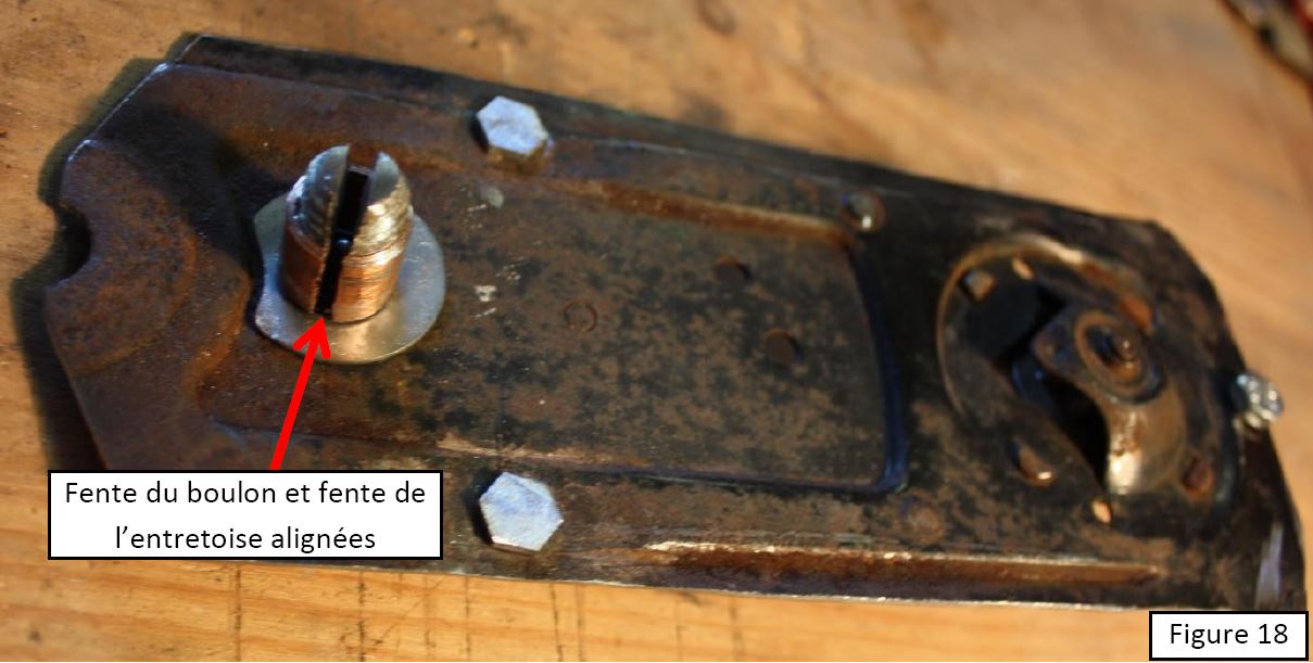 Figure 18 : on enfile l’entretoise sur le boulon en faisant correspondre sa fente à la fente du boulon.