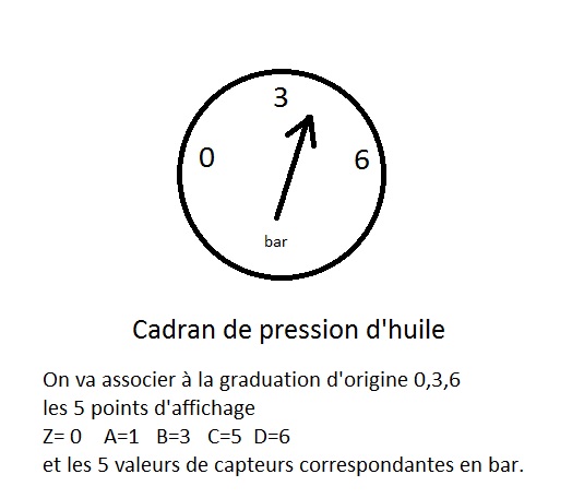 A la pression de 1 bar, on enregistre le capteur comme "a" et ainsi de suite jusqu’à 6 bar enregistré comme "d".