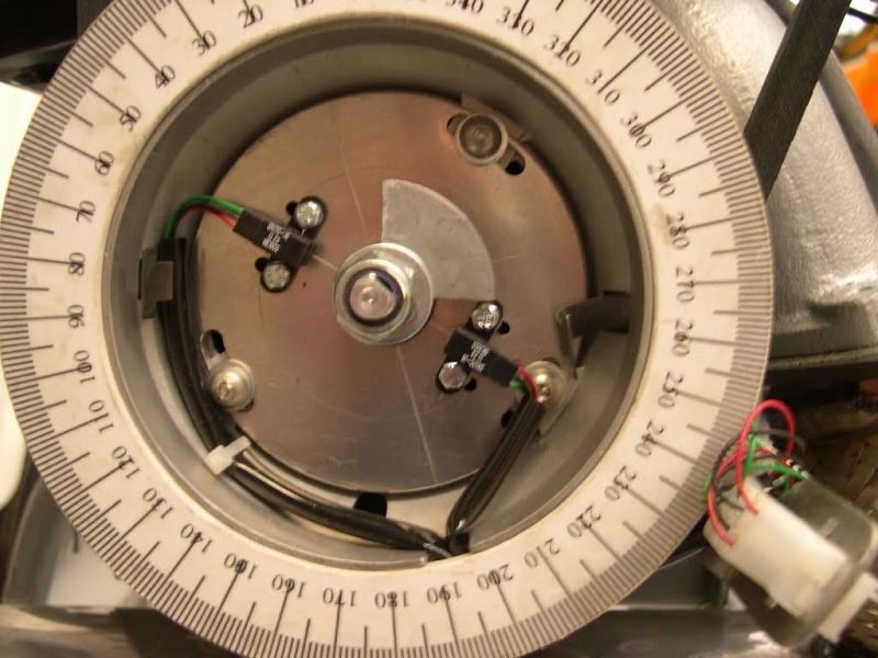 Version du 30/10/2016 : on utilise deux cibles à 180° sur la poulie du vilo . Noter qu’au lieu de 2 bobines, on pourrait utiliser une bobine double (dite aussi "jumo", plus moderne).