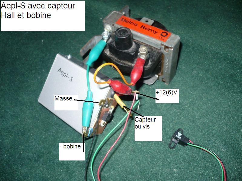 Dans cette version simplifiée de l’AEPL, il est indispensable d’utiliser un capteur Hall ( à monter dans l’allumeur ou en bout de vilebrequin ) car celui ci annule pratiquement le risque de parasites, comparé à l’utilisation des vis platinées.Le logiciel est prévu pour un capteur SATURE c’est à dire dont le fil de signal est normalement à la masse, puis s’ouvre lors du passage de l’aimant ou du repère en acier.