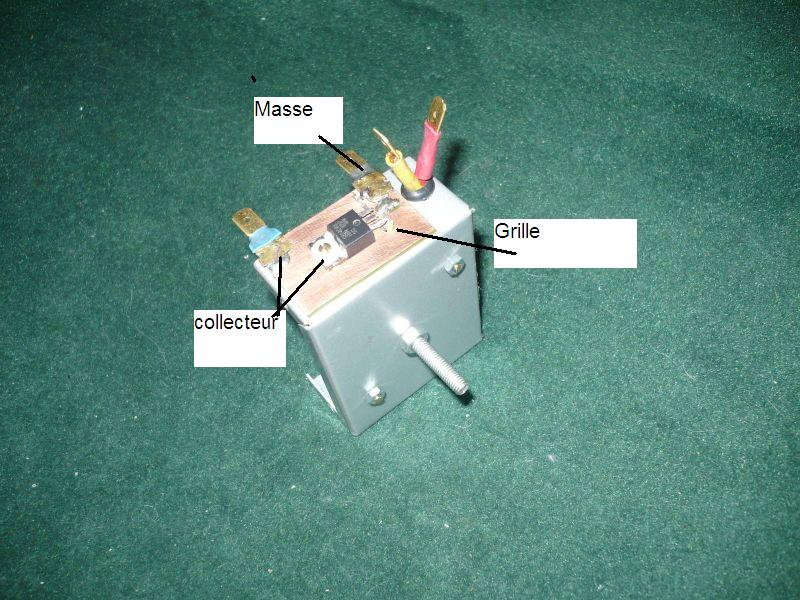 A noter que la patte du milieu, le collecteur, est connecté en interne à la patte de fixation de l’IGBT. Elle n’est donc pas utilisée ici.