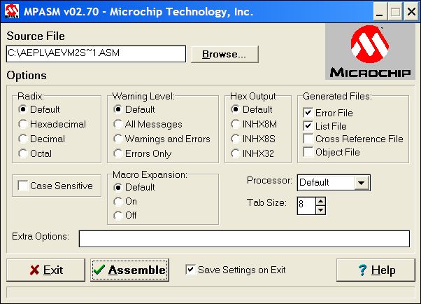 8 Clic sur MPASMWIN pour lancer l’assembleur de Microchip. On obtient :