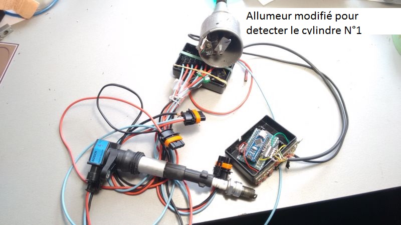 Une autre solution a été expérimentée, sans utiliser l’allumeur, avec une seule cible (cylindre 1/4), et l’activation des bobines 1/4 et 3/2 en parallèle, c’est à dire avec étincelle perdue (comme sur les 2CV Citroën par exemple).