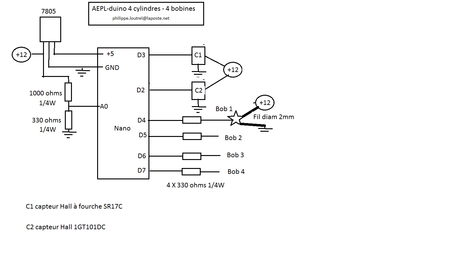Cette variante de l’AEPL-duino pilote 4 bobine crayon pour un moteur à 4 cylindres uniquement.