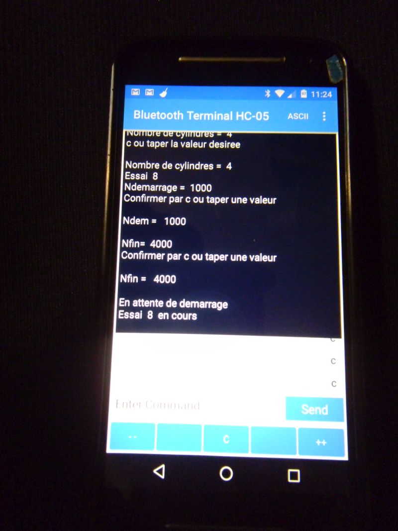 On fixe le régime de démarrage, Ndem = 1000 t/mn par exemple, puis le regime de fin d’essais, Nfin =4000t/mn par exemple.