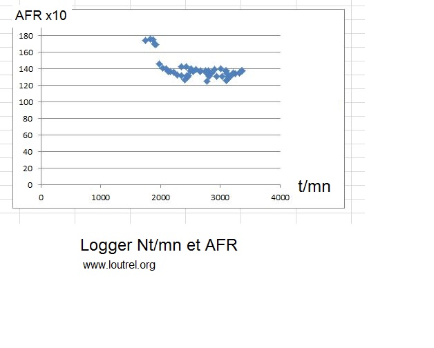 A la première utilisation, initialiser la mémoire EEPROM par la fonction "z" proposée. Sa capacité de 1024 bytes permet de stocker environ 300 couples de points( N,AFR ), correspondants à environ 20 essais de 10s .