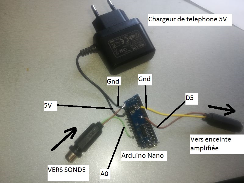 Le fil de sonde est connecté à la masse et à l’entrée analogique A0.