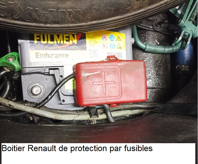 Ce petit boitier ( provenance Renault) peut éviter un incendie si le gros fil du démareur touche la masse: un fusible spécifique laisse passer les 200A + du démarreur mais sautera en cas de court-circuit.Patrick S