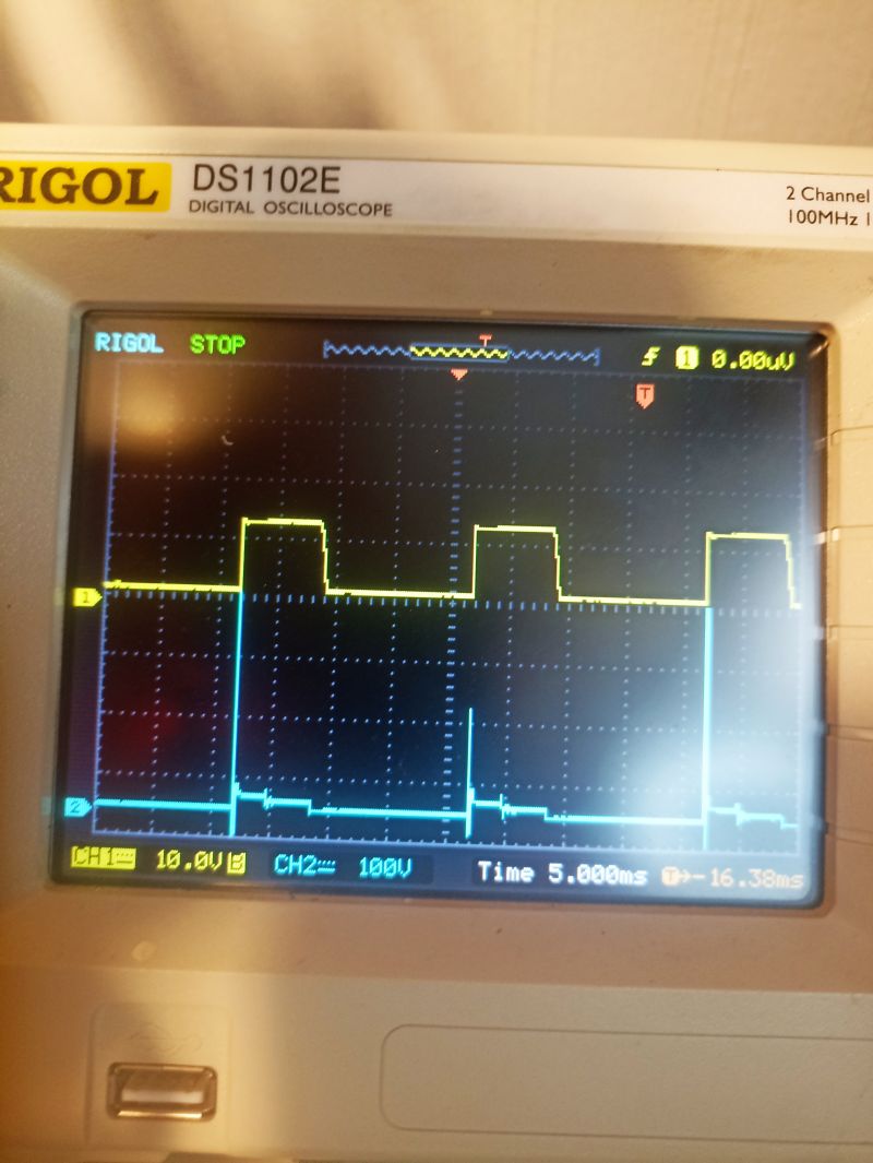 Les pointes de plus de 200V arrivant en 6 sont filtrées par la bobine et en 5 on trouve une onde carrée.