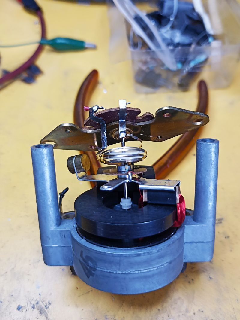 On faisait bien les choses chez Jaeger à l'époque: on voit le rubis rouge qui supporte l'extrémité de l'axe du galvanomètre.