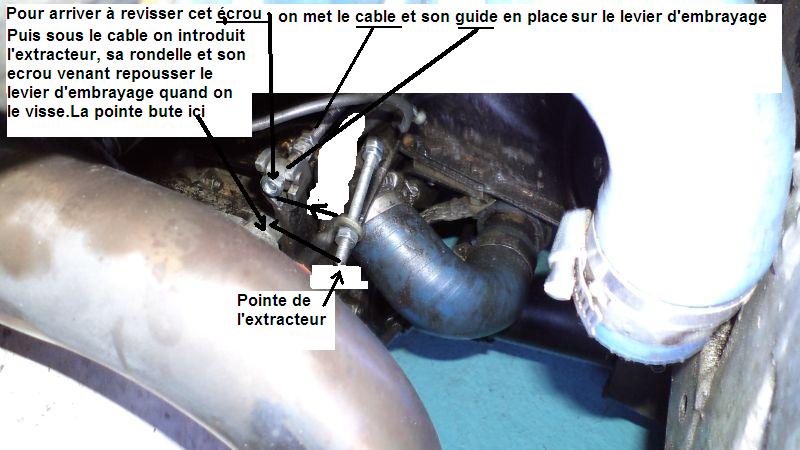 sur le levier d’embrayage mais sous le câble ce qui permet de visser les