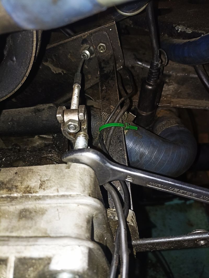3.Passer le câble vers l’avant et si par chance il est assez long, monter la chape sur l’oreille du relais d’embrayage, puis revenir à l’arrière régler la garde et bloquer l’écrou par un contre-écrou.