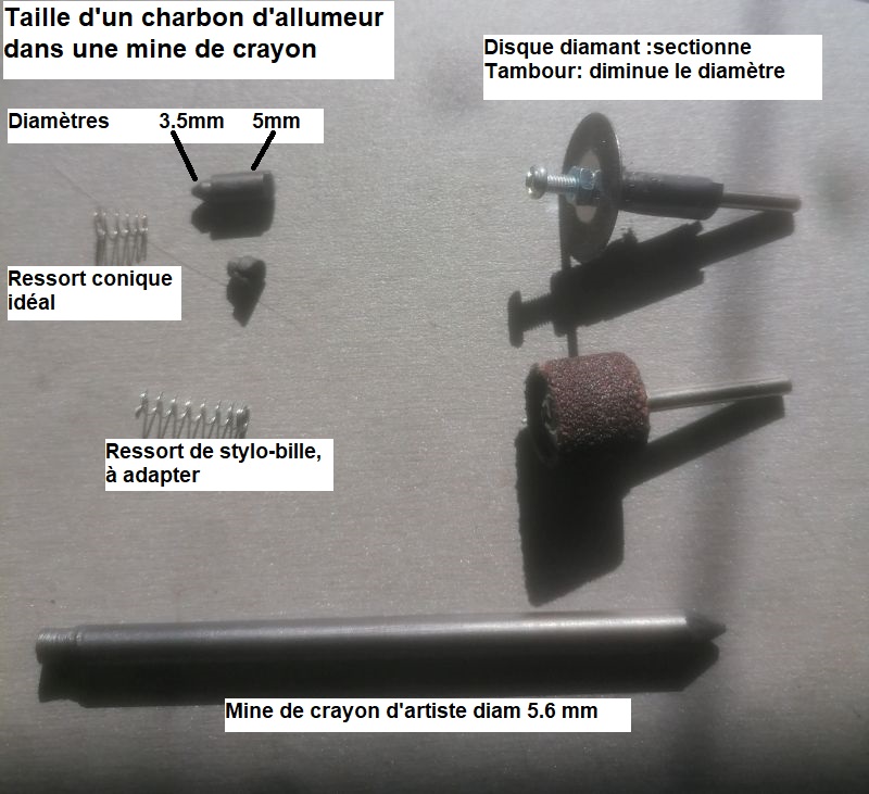 tête d’allumeur, sinon un ressort de stylo-bille peut éventuellement