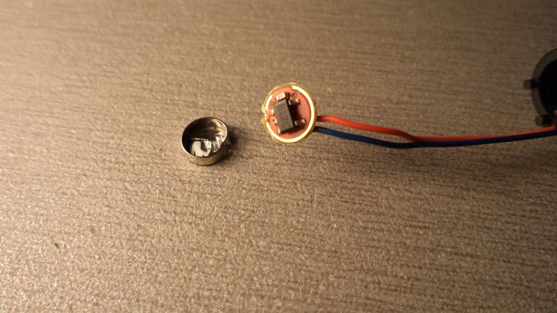 Le capteur a été ouvert : on distingue la membrane circulaire qui