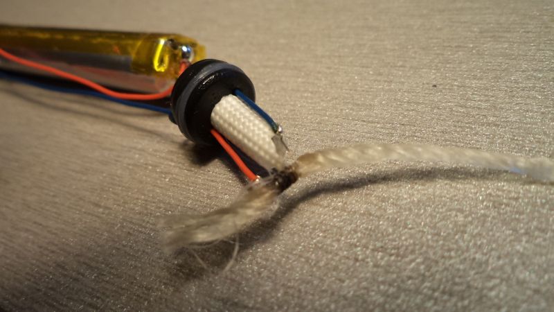 On voit le petit cylindre de fil résistif bobiné, porté au rouge quand