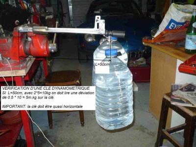 dans le cas des photos, L=50cm, M=10kg, on doit lire un couple compris entre 4.8kg et 5.2kg.