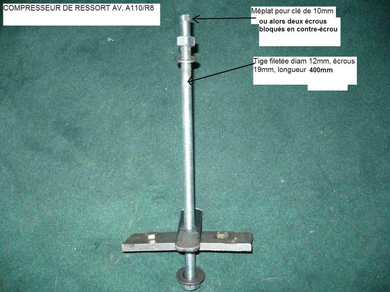 Les deux vis se positionnent à l’intérieur de la première spire compressée, selon un diamètre, les deux tôles étant placées perpendiculairement. Ce montage interdit ainsi tout déplacement latéral : la tige filetée reste centrée pendant toute l’utilisation et ne "chasse" pas. Une clé plate à œil à cliquet est fortement recommandée.