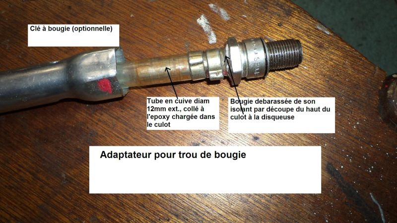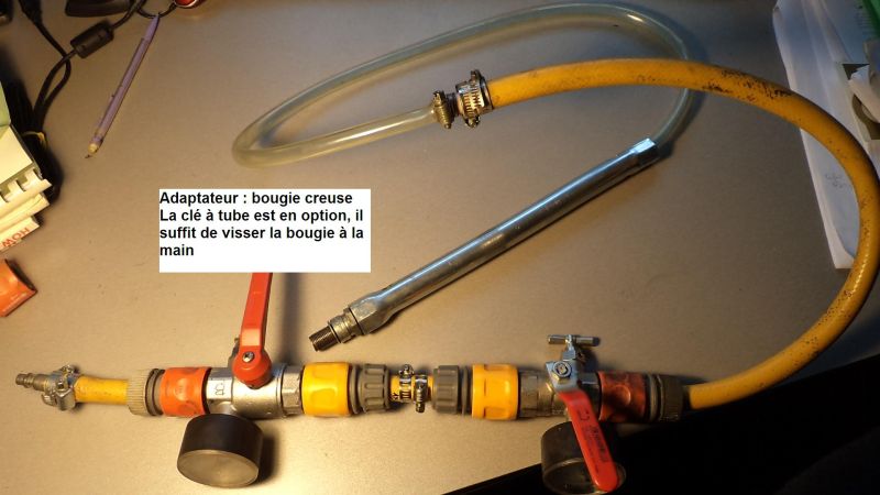 On connecte le flexible de sortie de l’appareil à un adaptateur idoine vissé en lieu et place de la bougie ( voir l’annexe).