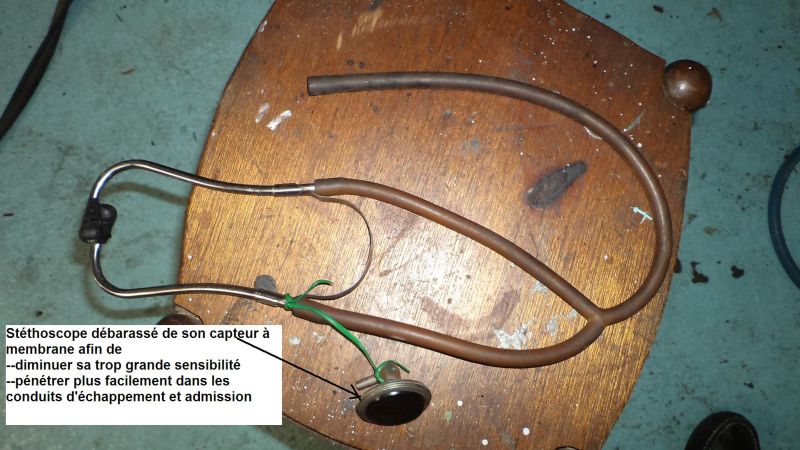 Pour vérifier ces causes de fuites, on écoute (avec un stéthoscope si possible) l’éventuel son de l’air qui s’échappe dans le conduit d’admission, d’échappement, et puits de bougie.