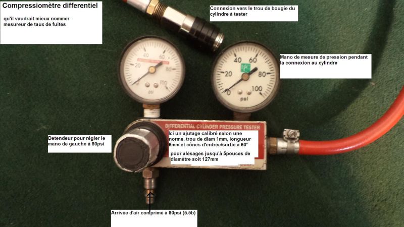 On conçoit que le mano de droite indiquera une pression inversement proportionnelle à la fuite d’air : 80 psi si fuite nulle, 0 psi si la sortie est à l’air libre.