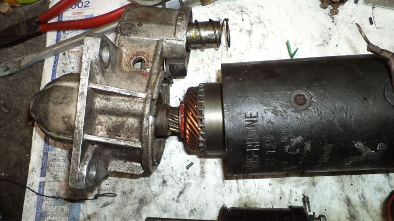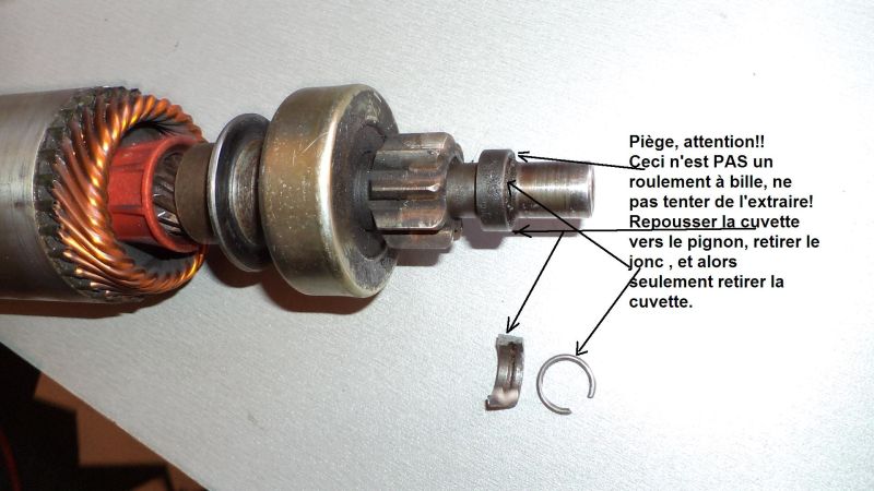 Nota : ne pas repérer les empilages de rondelles et oublier de graisser les deux paliers de l’axe sont les 2 pièges classiques dans la réparation d’un démarreur...