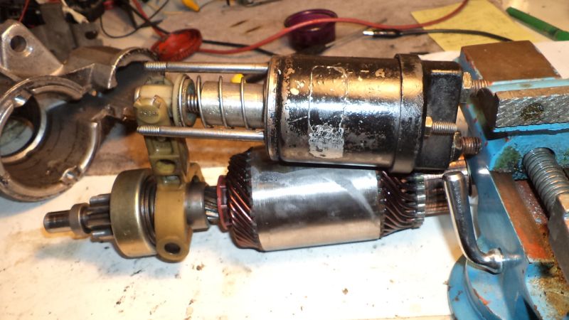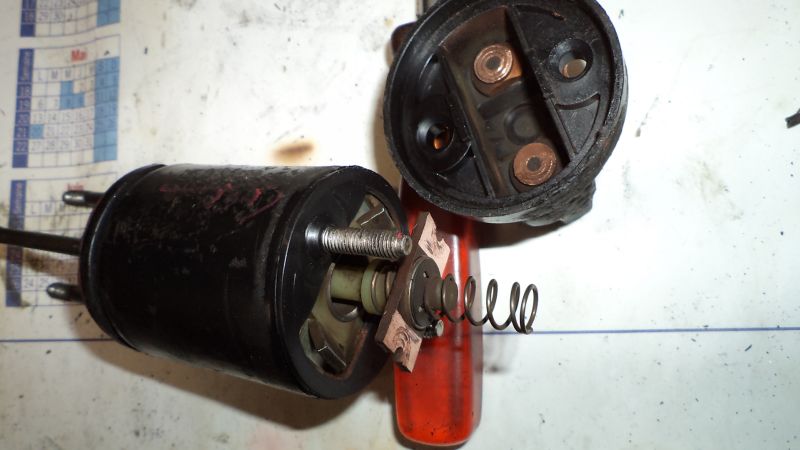 Si les charbons sont très usés, l’enroulement d’appel (vert) ci dessous, en série avec les charbons,n’est plus alimenté, le noyau du solénoïde reste immobile lorsque on actionne le Neiman.Donc rien ne se passe.Un dépannage par choc est parfois possible (voir la fin de cet article).