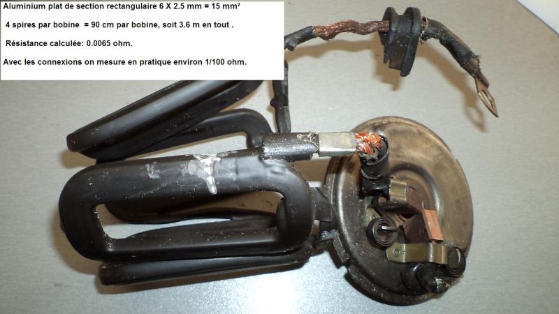 Le rotor présente 14 spires en parallèles sur 15 spires soit l’équivalent de 7.3spires, soit 7.3mohm.