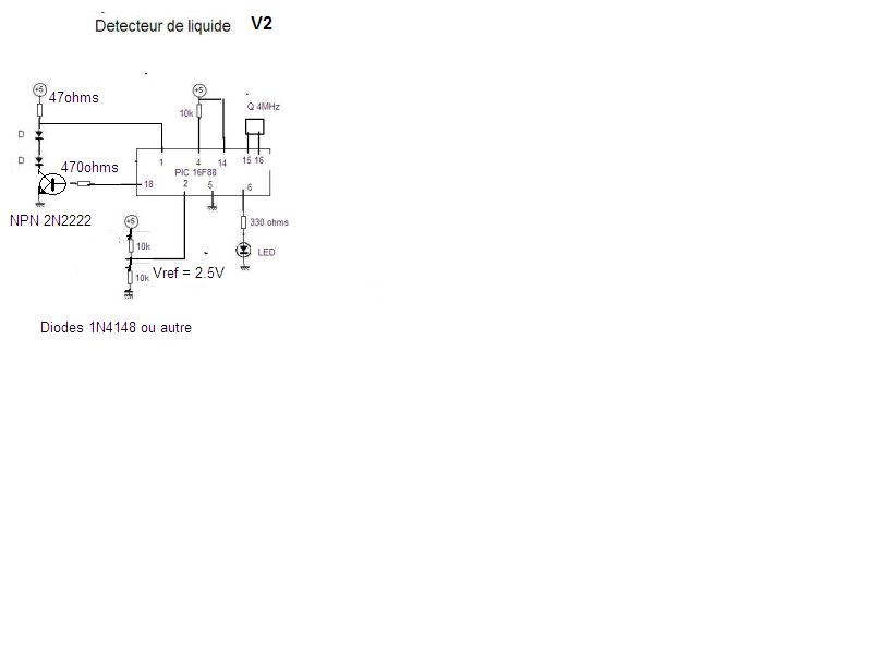 Concernant ce circuit, deux diodes de type 1N4148 ou équivalent, en série, sont alimentées sur commande par le PIC (patte 18 mise à la masse), via un transistor 2N2222 par exemple.