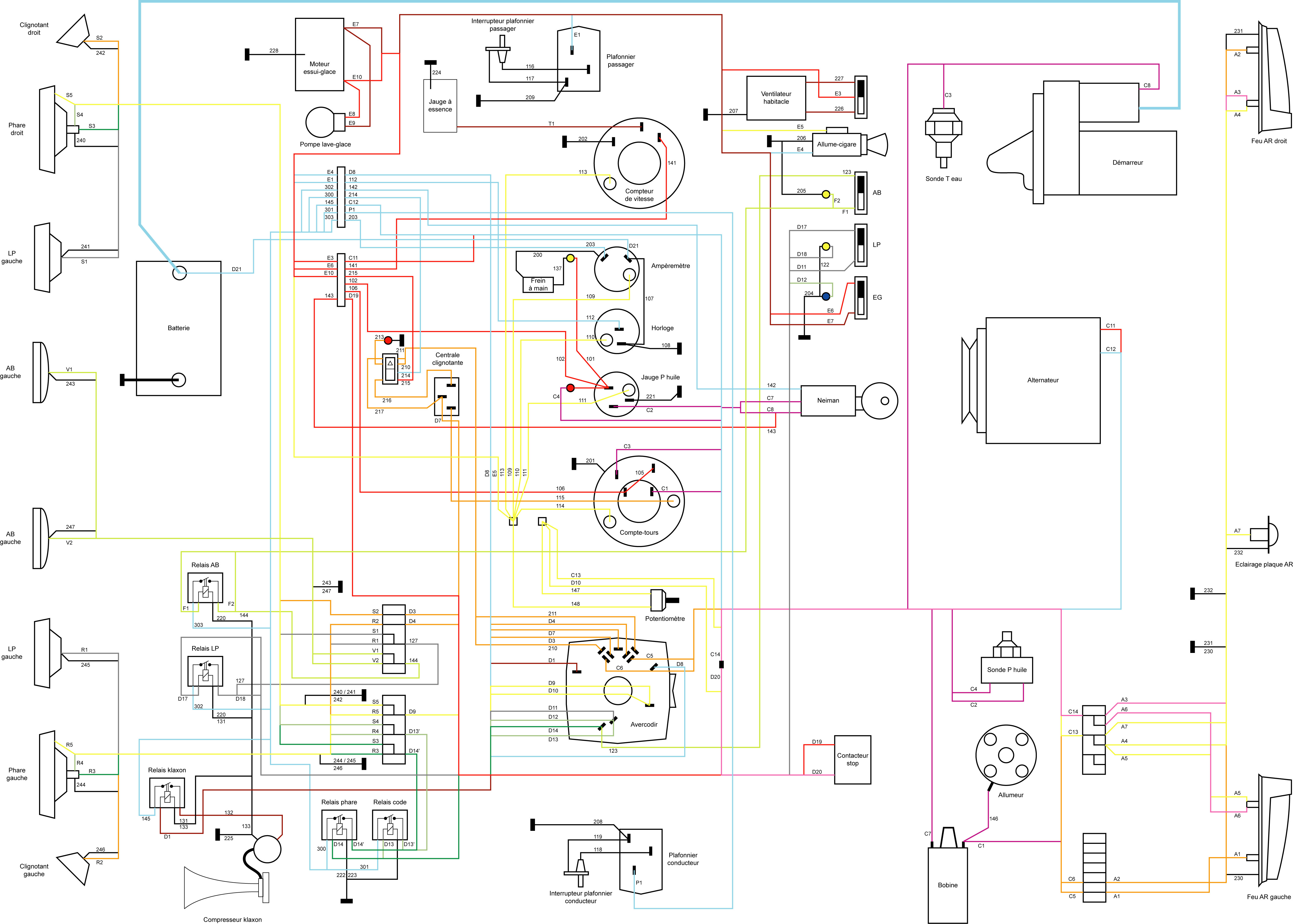 Un plan interactif réalisé par Michel (pseudo 1600s1970 sur le Forum Alpine Renault) qui nous épargne nombre de recherches: en passant la souris sur le numero d'un fil on "allume" son ou ses extrémités...