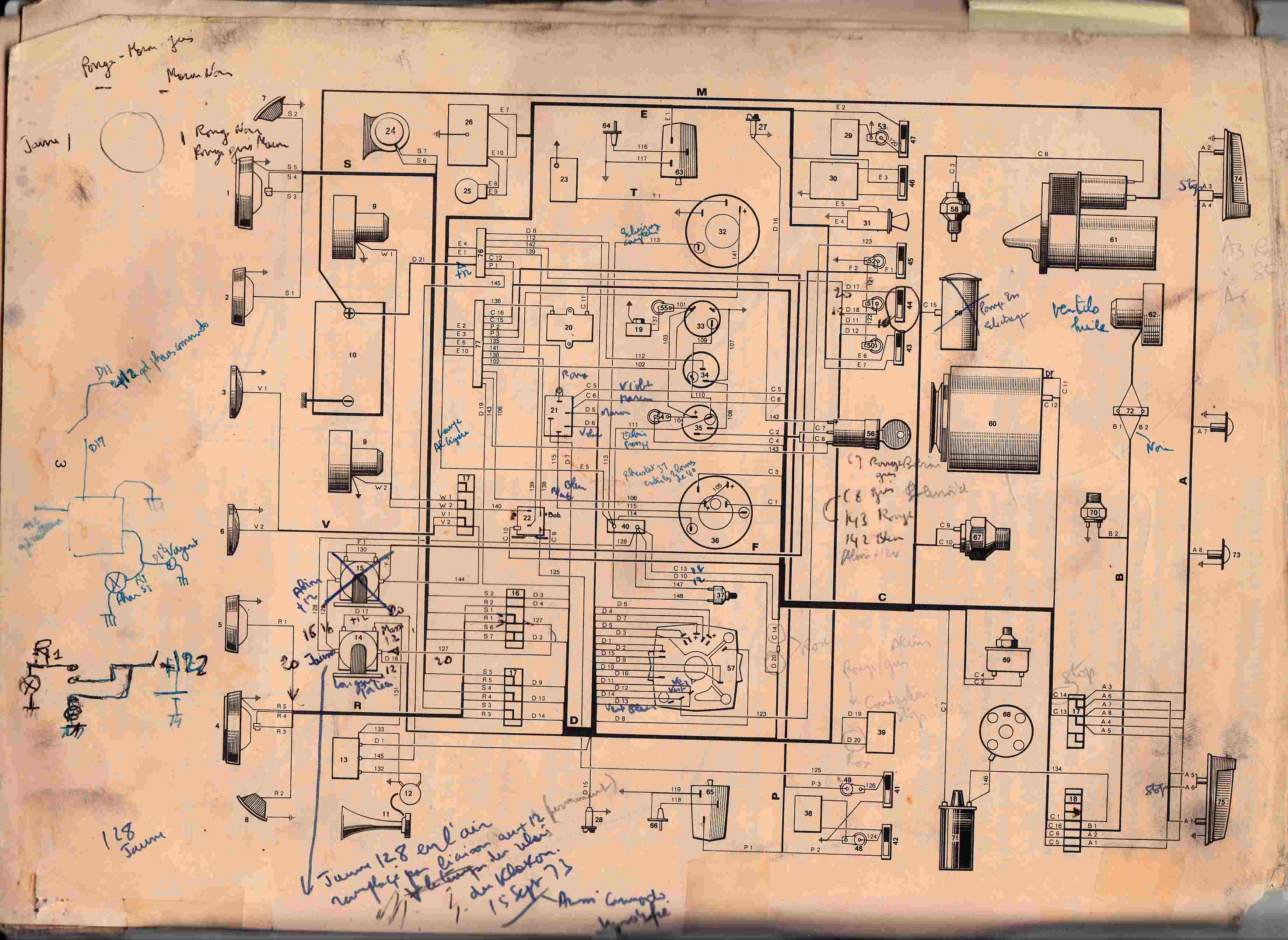 Et enfin, issu du Manuel de Réparation, additif octobre 1971)un schéma cradingue mais de 1600S, donc plus complet que le V85 ( il y a même la pompe à essence électrique des Groupe 4 ! :