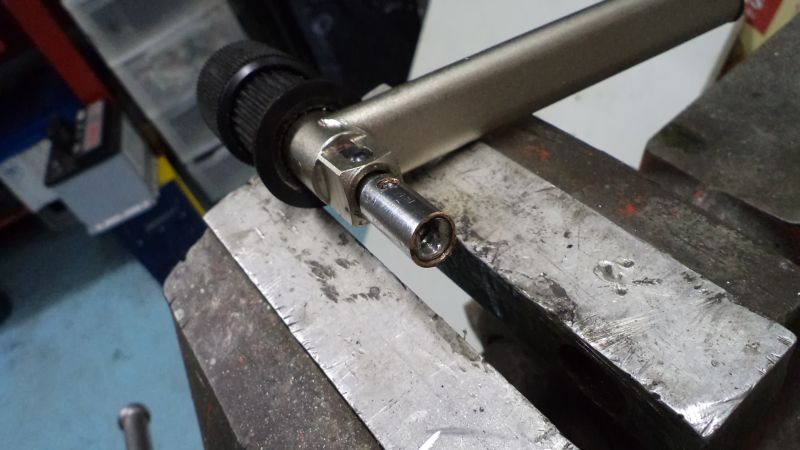 Une clavette (vis de 4mm )traverse tube et tournevis pour les solidariser