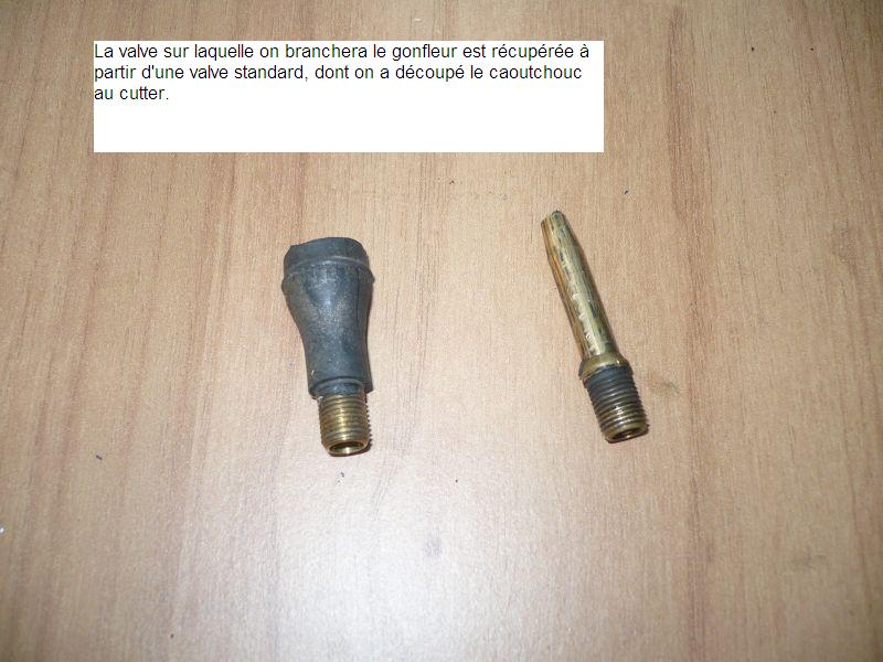 3 On munit ce raccord d’une valve standard de pneu après l’avoir débarrassée de son caoutchouc au cutter.
