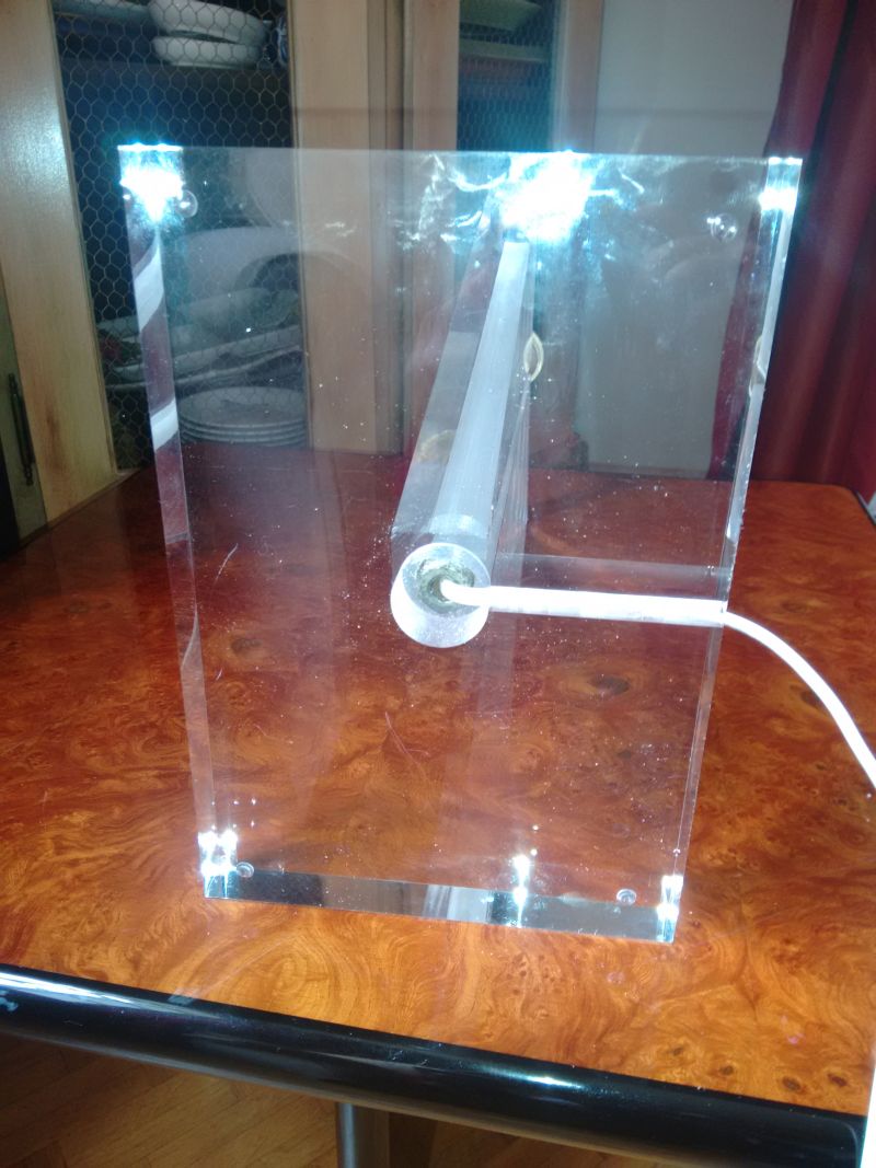Une fois les deux element en plexi de 30 mm découpés, on les assemble avec un tube fileté standard vendu au mètre ( diamètre 10 mm M 10x100 , Leroy Merlin).
