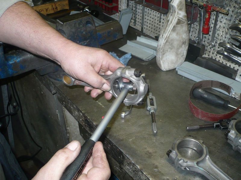 On commence par serrer les bielles au couple, ici 4.5m.kg, afin de