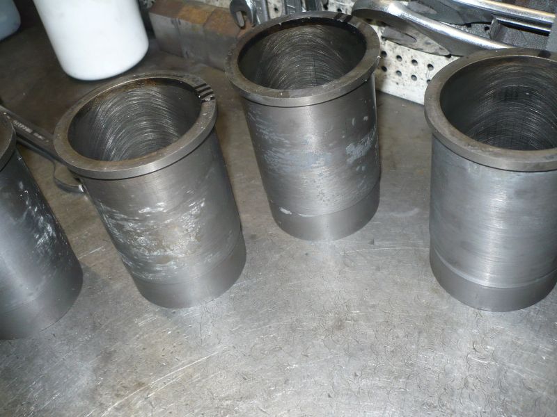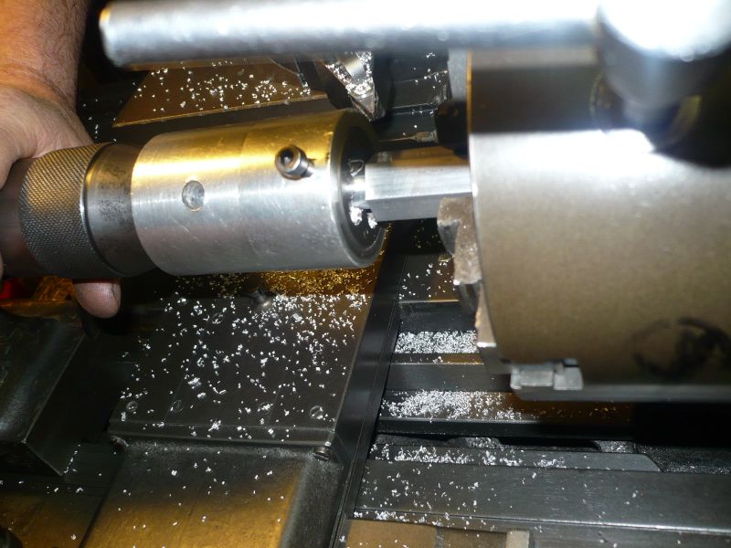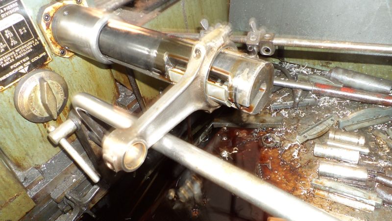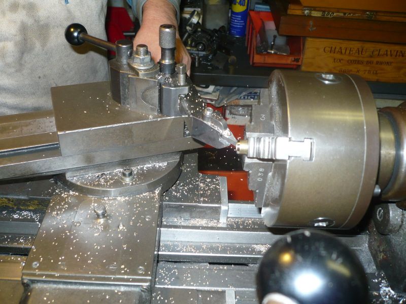 Chemises reprises au tour. Noter le mandrin en contre pointe pour