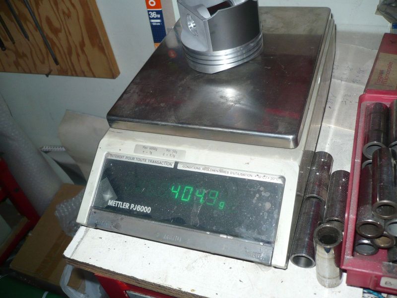 La fourchette de poids pour les 4 pistons avec axe est de 405.2g à