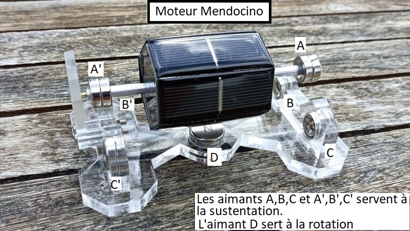 On contourne ici le problème en faisant s'appuyer le rotor sur une plaque de butée (à gauche de l'aimant A' ci dessus).