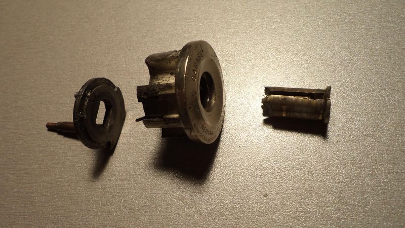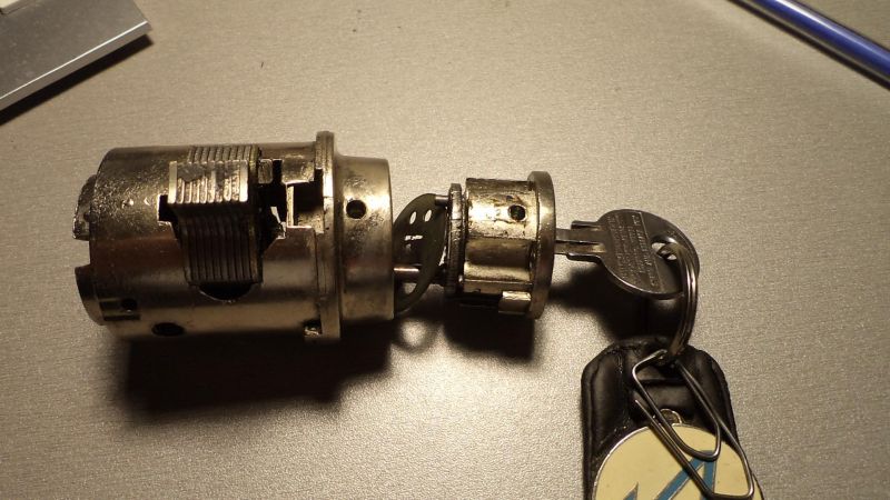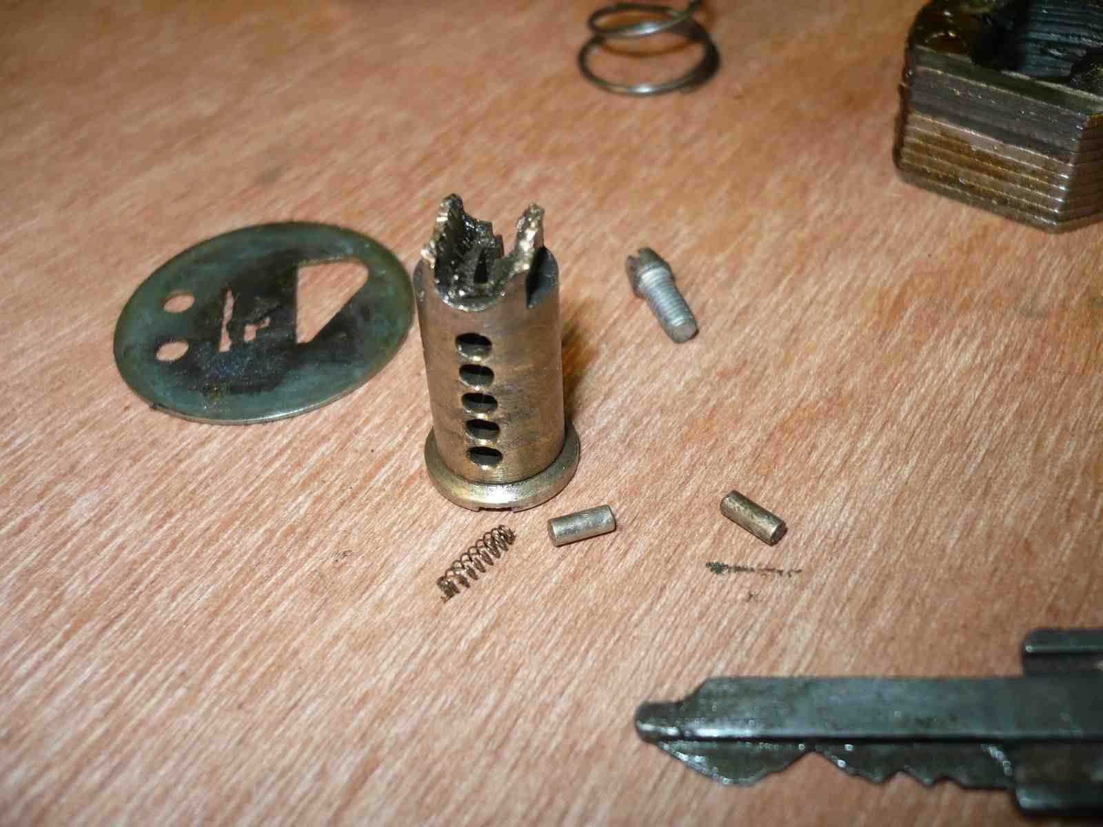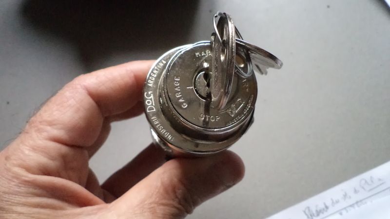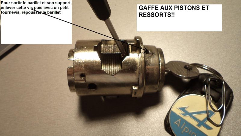 Après 35 ans de bons et loyaux services, il commençait à accrocher sérieusement à l’ouverture. Je l’ai donc déposé et bricolé le barillet pour ne plus risquer de rester bloqué à l’arrêt !