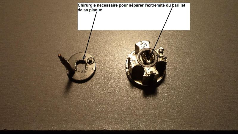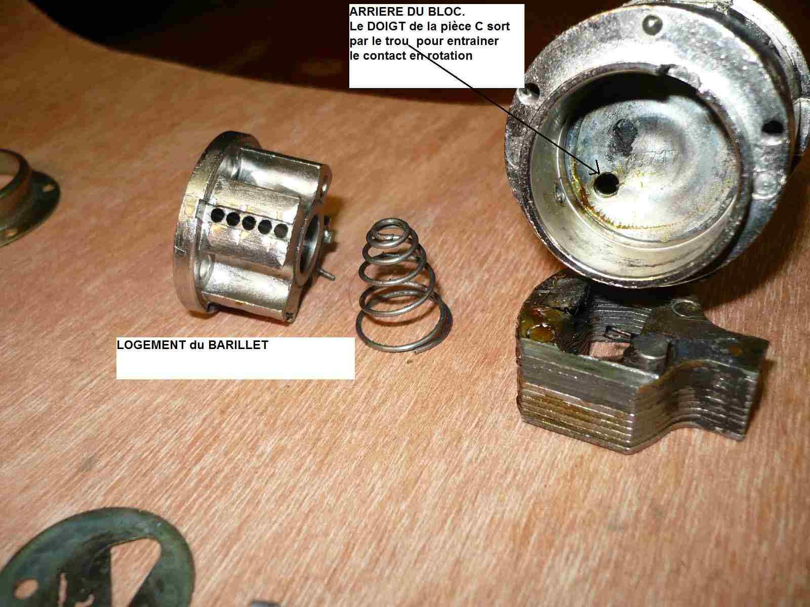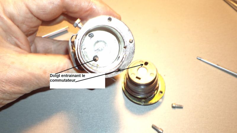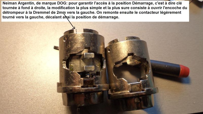 Par contre, (voir la photo ci dessous) déposer le contacteur, agrandir de 2 mm l’encoche du détrompeur et revisser le contacteur légèrement tourné sur la gauche
