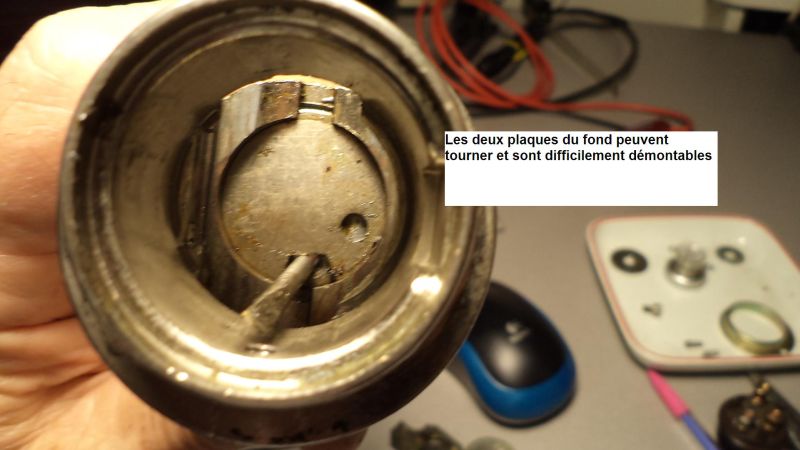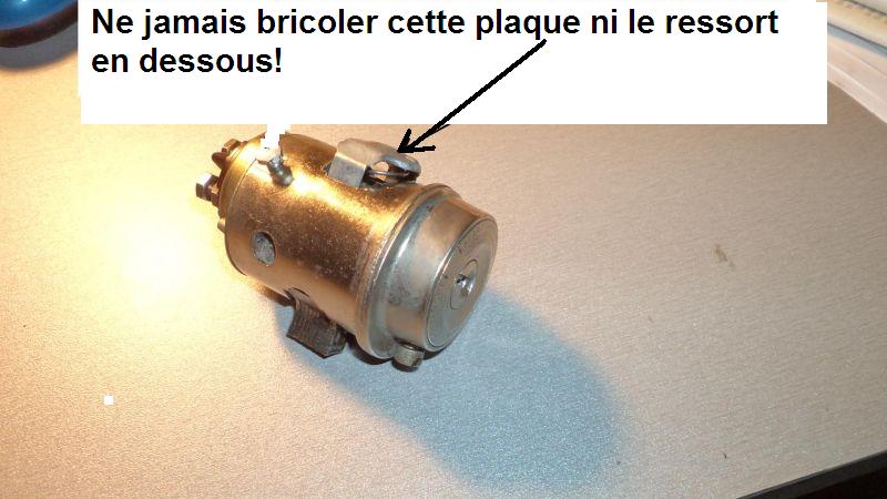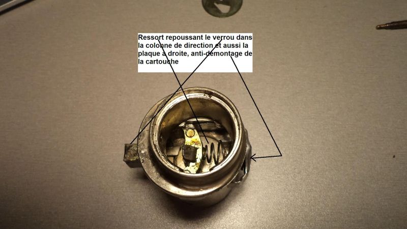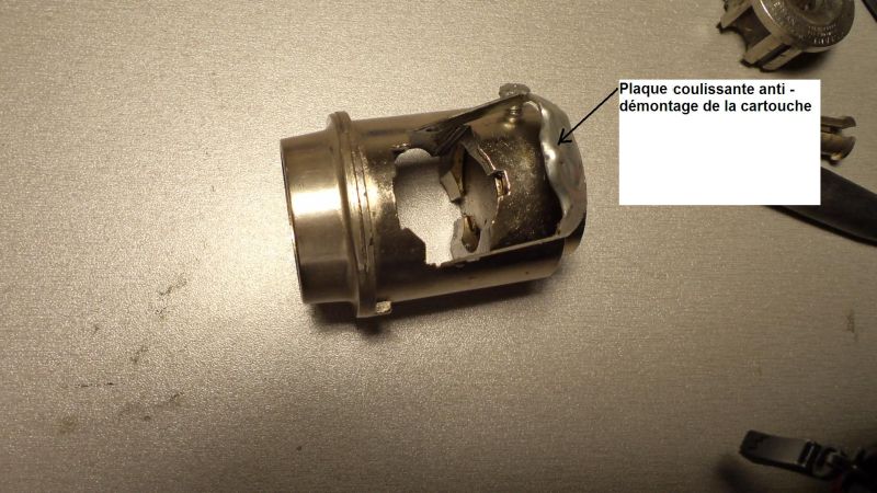 Sur la droite de la plaque on voit un téton qui, poussé par le verrou participe au retour de la position démarrage à la position marche