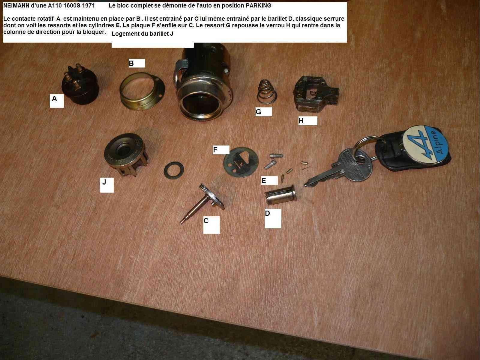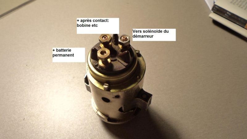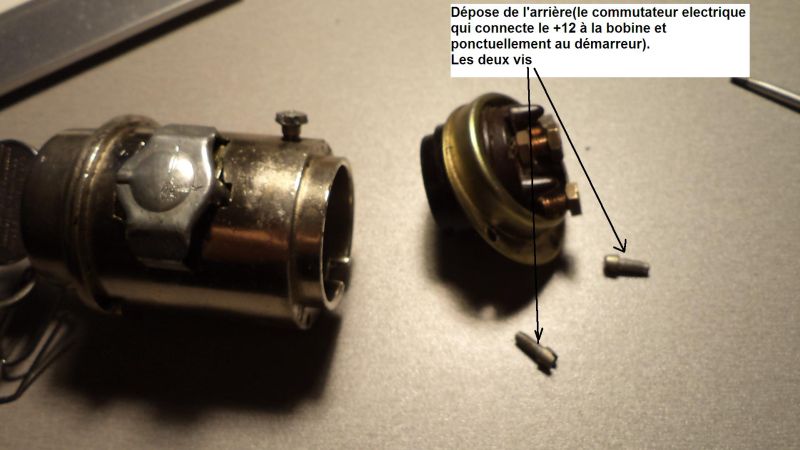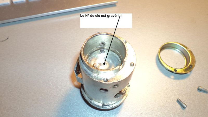 On voit donc comment récupérer ce numéro en cas de perte de clé : on dépose les fils arrivant sur les 3 entrée du Neiman, on dévisse les deux vis qui maintiennent le commutateur et celui ci une fois déposé on accède au numéro. Il est je crois encore possible de commander une clé à partir de ce numéro.