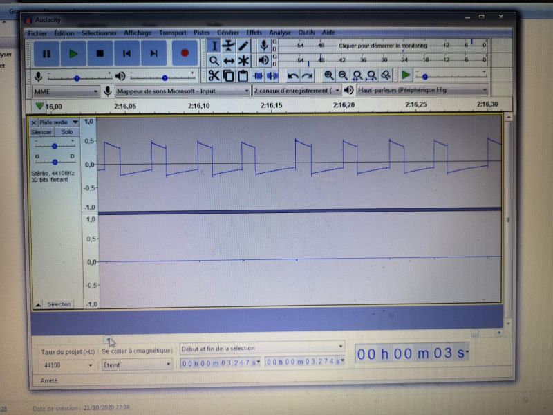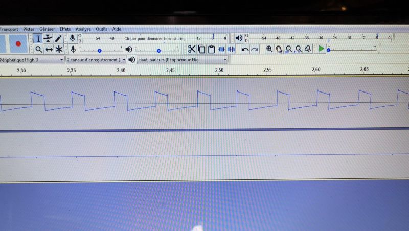 Après bien des recherches, la trace du signal du capteur Hall à l'oscilloscope révèle une belle asymétrie dans les créneaux!