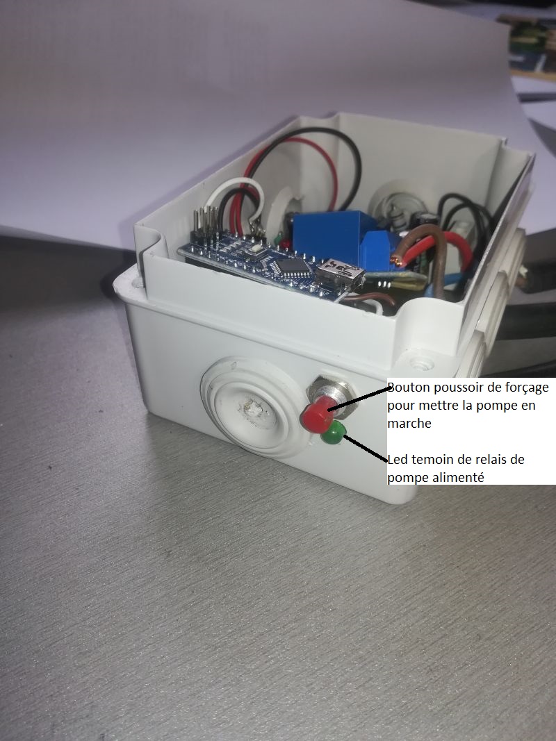 Le Bouton Poussoir sert à forcer la mise en marche de la pompe pour vérifier son fonctionnement par exemple.