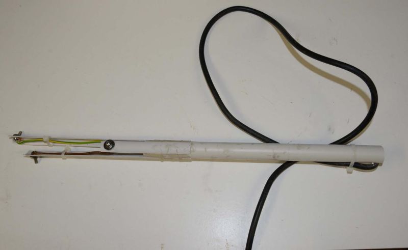 — environ 10cm au dessus ( à voir selon la pompe) on trouve l’électrode de niveau BAS, c’est à dire le niveau en dessous duquel la pompe doit s’arrêter de pomper.