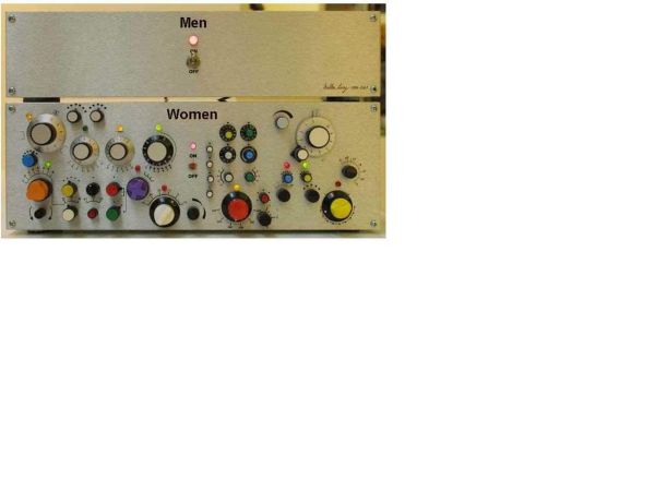 Hormis le fugitif moment où une femme est amoureuse, elle ne fera que tolérer plus ou moins les assauts galants de son partenaire, selon son état d’humeur, mais il serait bien présomptueux de parler de plaisir : beaucoup trop de circonstances favorables doivent être réunies pour que cette éventualité soit statistiquement significative (voir l’image des boîtiers électroniques ci-dessus). On peut comparer l’état amoureux, instable par essence, à une situation où chacun projette son film sur l’écran constitué par l’autre. Lorsque la projection s’estompe, la réalité apparaît. C’est un rêve typiquement féminin que de prolonger éternellement cet état amoureux. L’homme est plus réaliste dans ce domaine et il se contente de « faire avec ». Des phrases comme « Quand on n’a pas ce qu’on aime, il faut aimer ce qu’on a » sont souvent d’utiles béquilles masculines, mais elles exaspèrent généralement les femmes. Celles ci sont par essence plus idéalistes et aussi plus romantiques, au sens de regarder la réalité à travers un filtre, obtenant ainsi une image qui leur convient mieux. Encore une fois, nul n’a plus raison ou plus tort que l’autre : les deux points de vue sont aussi respectables mais ils sont aussi totalement inconciliables.